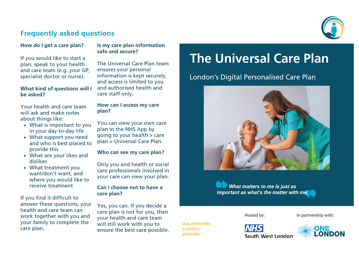 You can find UCP specific patient leaflets on our For Londoners and Easy Read For Londoners page.